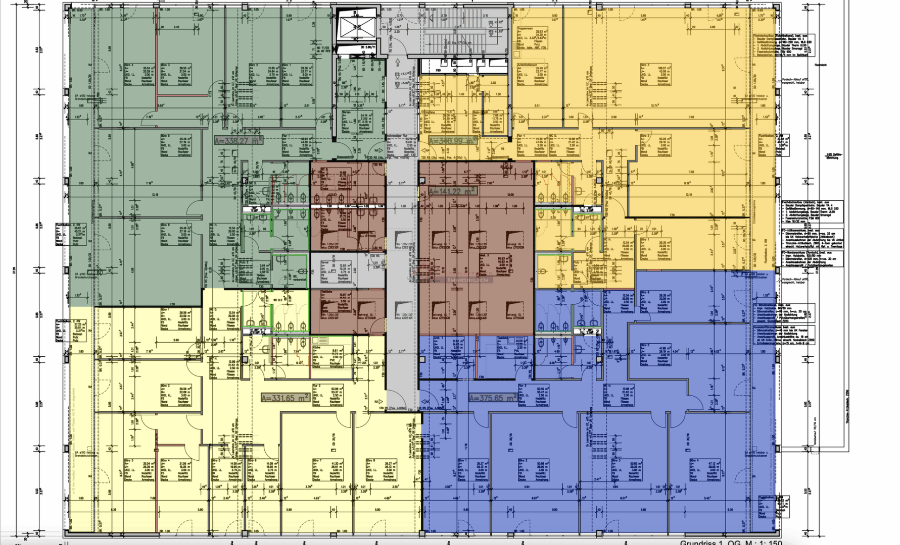 ca. 415 m² (im Grundriss grün unterlegt)