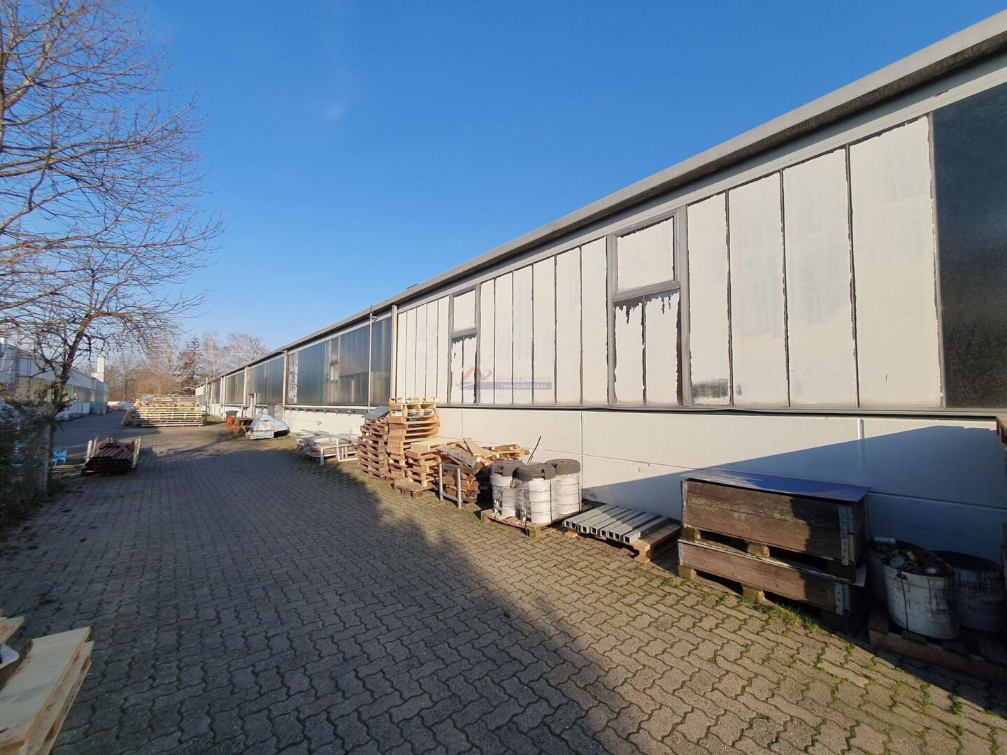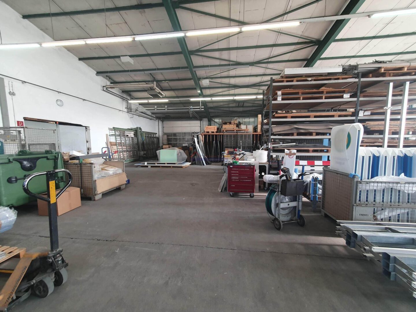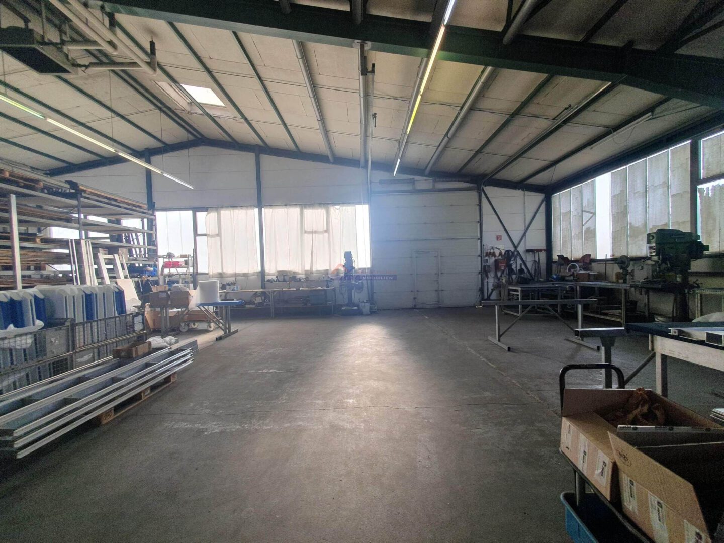 Diese ca. 1.750 m² große Halle befindet sich in Agglomeration mit 3 weiteren Unternehmen auf einem von 2 Strassen anfahrbaren, eingefriedeten Grundstück und ist Ideal für Lager- und Produktionszwecke geeignet.